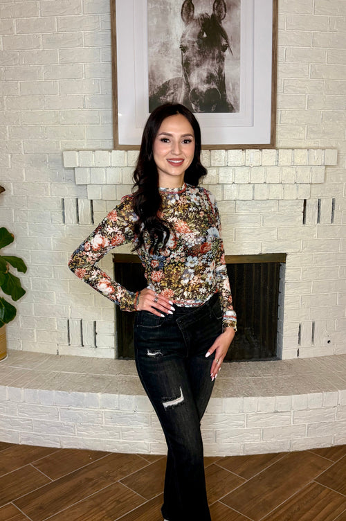 Black Sheer Floral Top