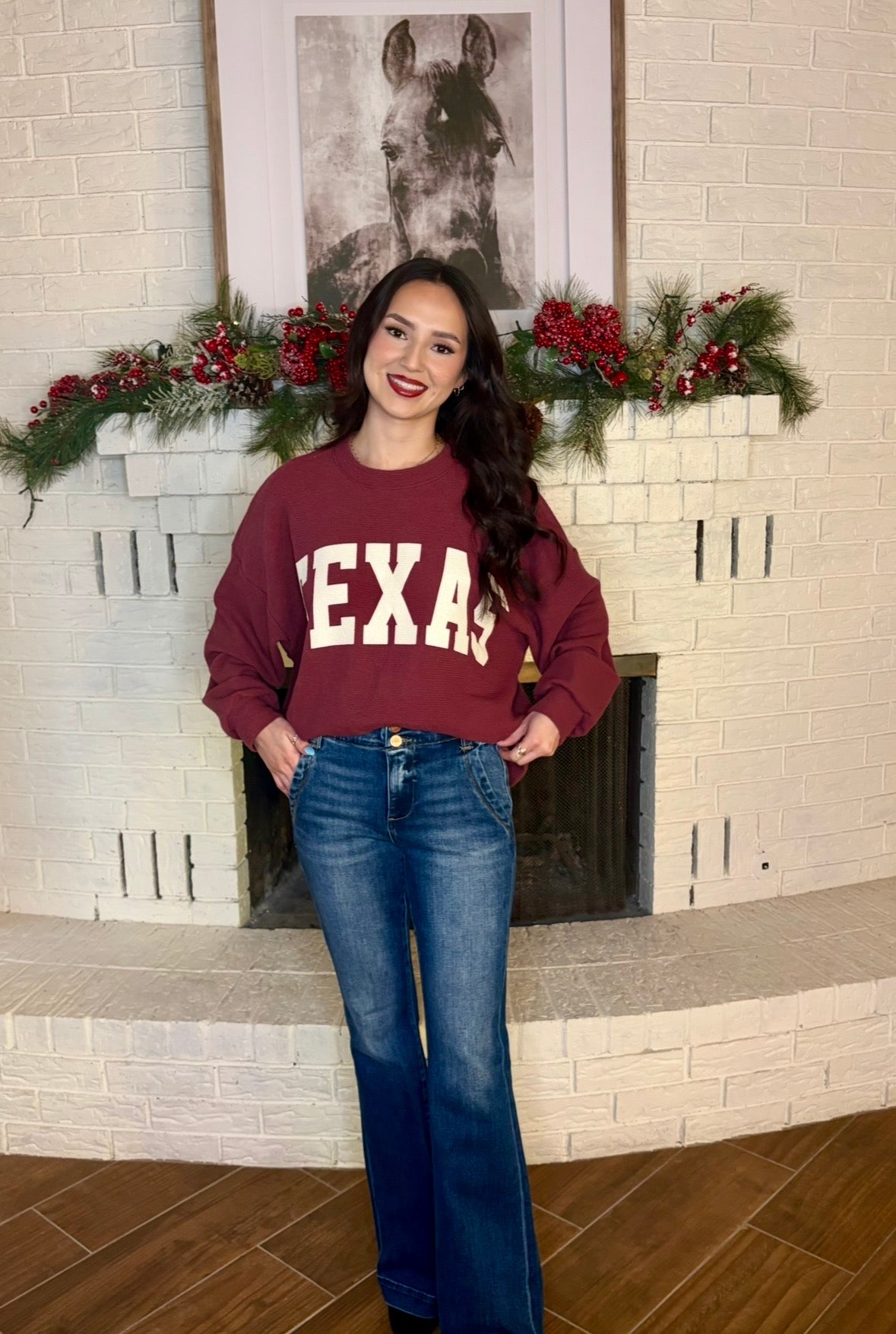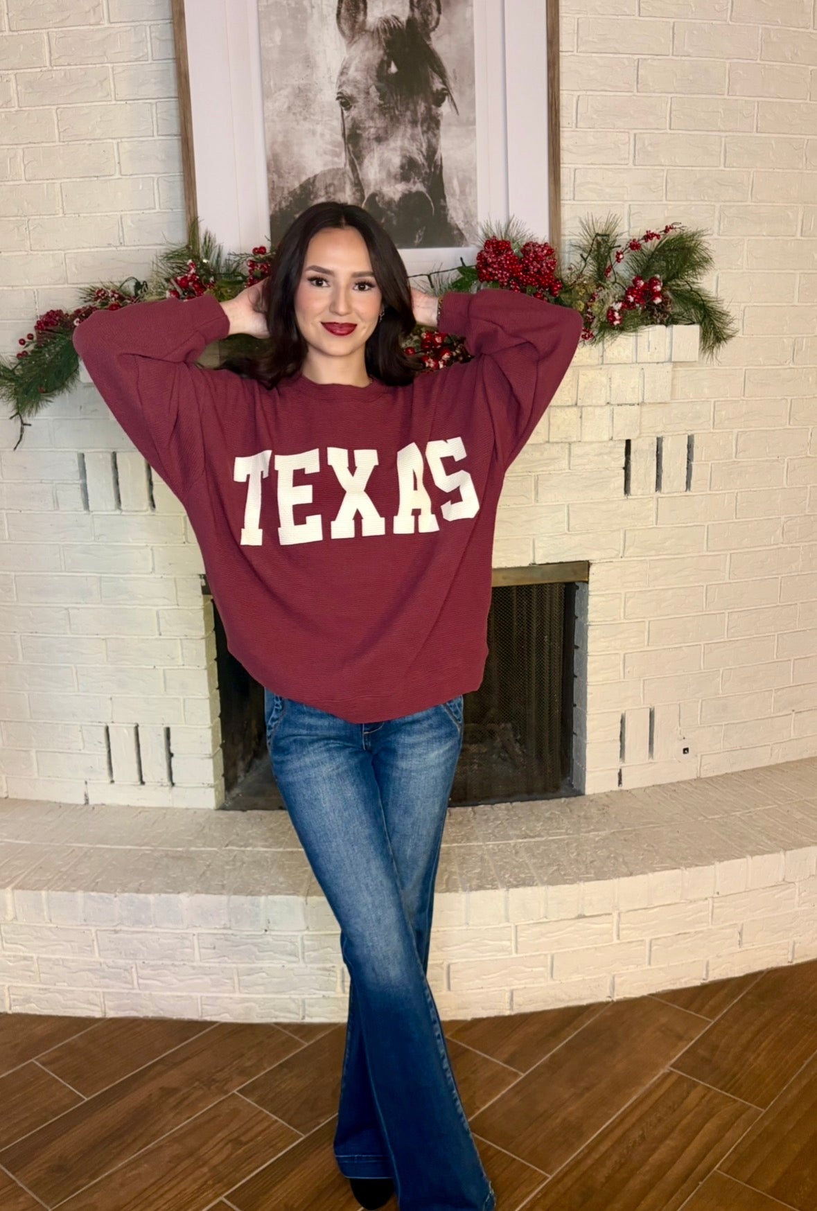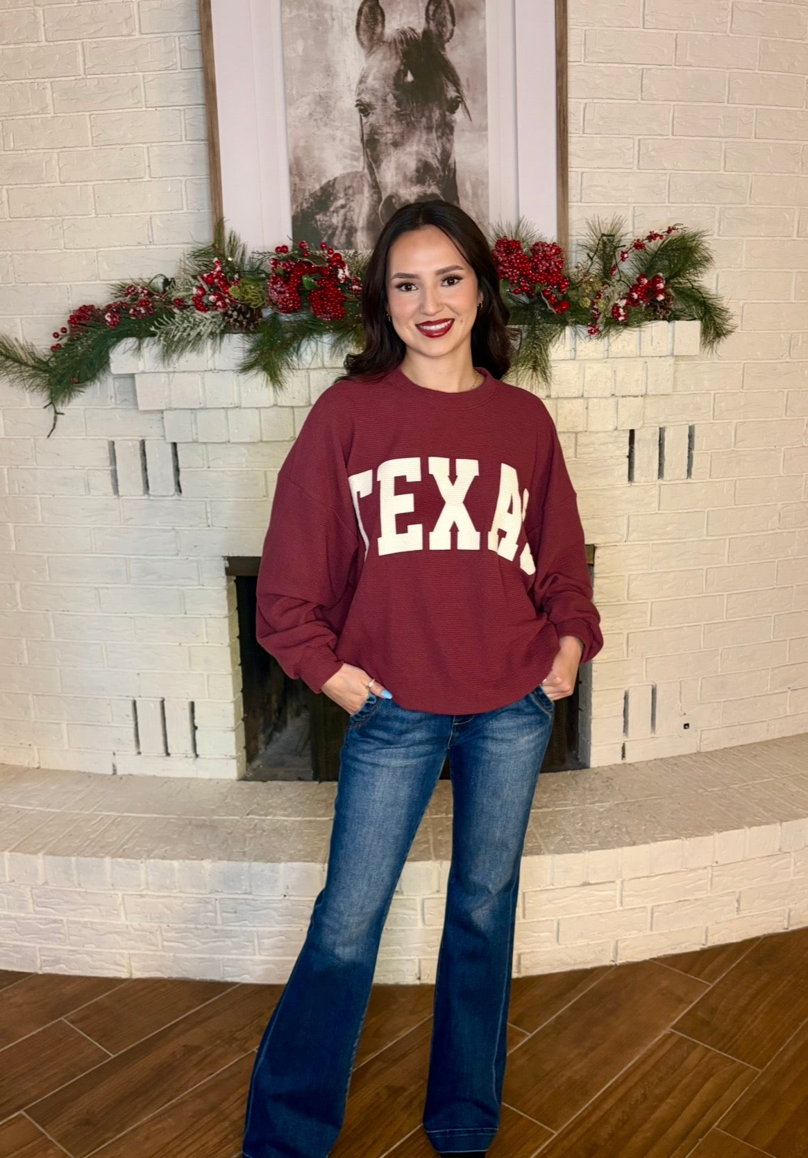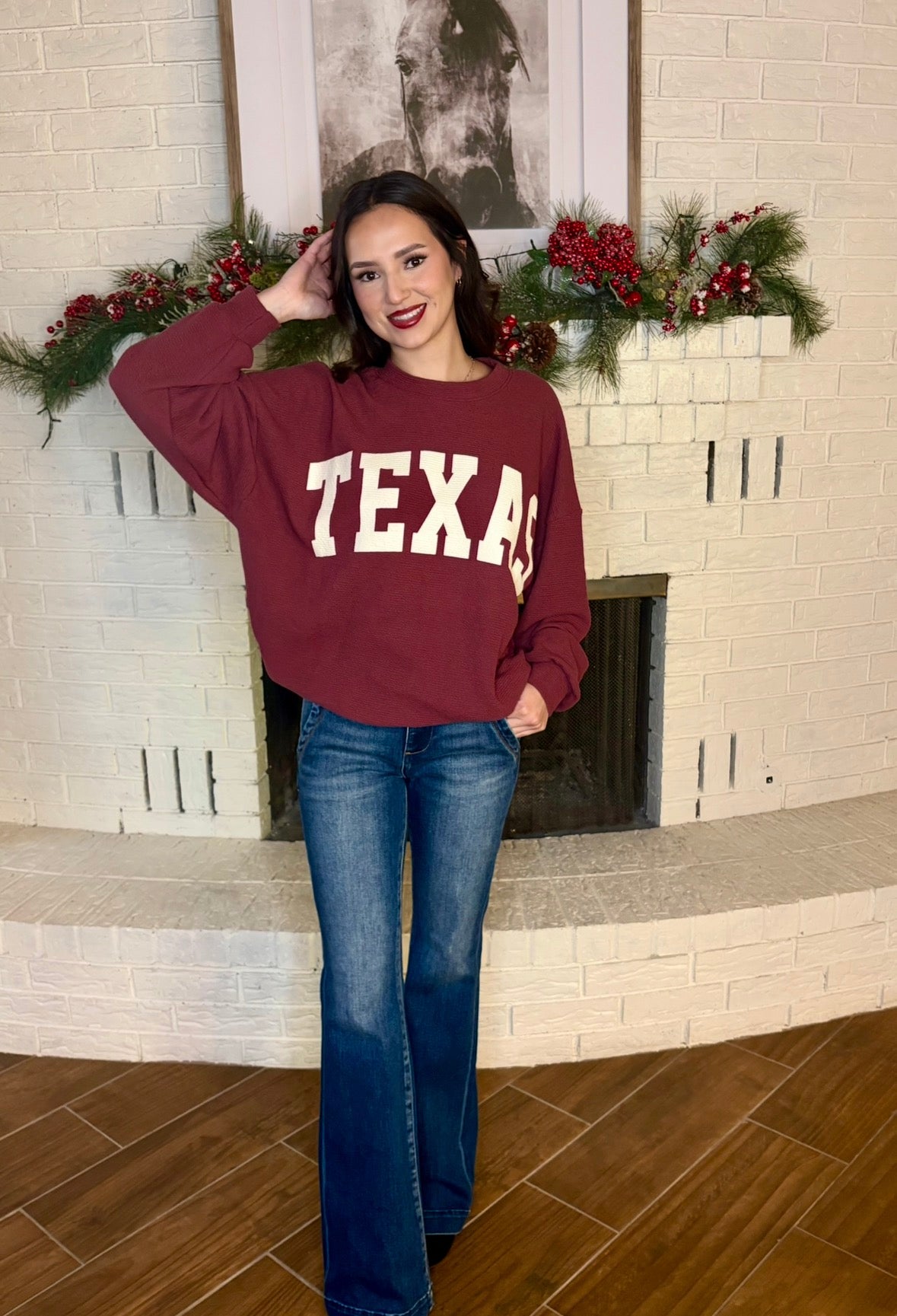 Texas Cloudy Knit Long Sleeve Graphic Top