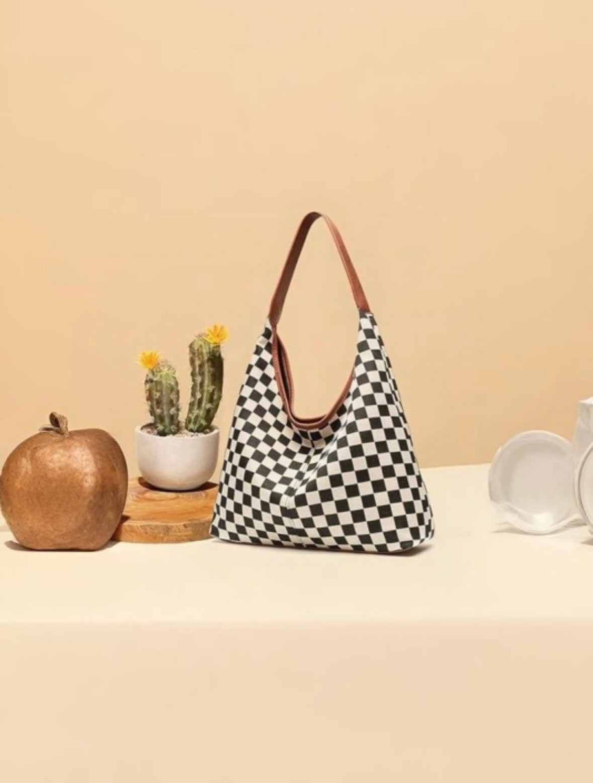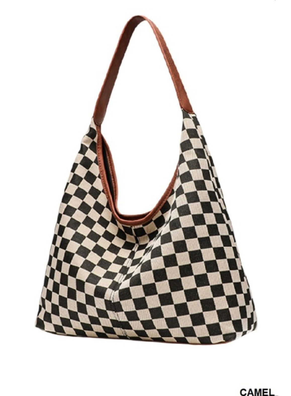Checkered Hobo Tote Bag (camel)